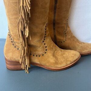Frye Ray Fringe Over the Knee Tall Suede Grommet Pointed Toe Boots Tan 6.5