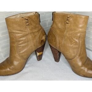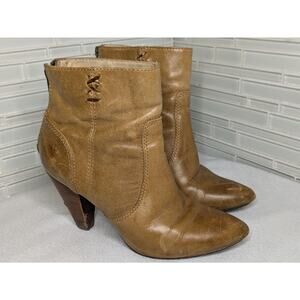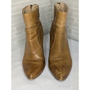 Frye Regina Heel Bootie 6.5 Taupe Leather Point Toe Ankle Boho Cowgirl Western