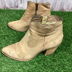 Frye Reina Western Ankle Boots Pointy Toe Light Tan Leather 7.5