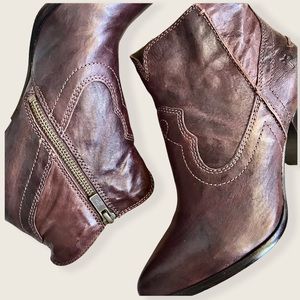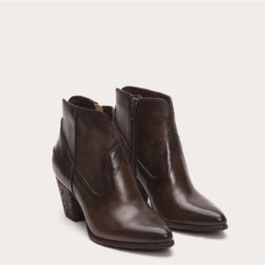 Frye Renee Seam Brown Leather Short Ankle Bootie