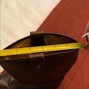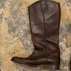 Brown Frye riding boots. Has had a little wear and a few marks but are still in good condition. Dark brown leather