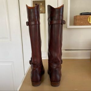 Sturdy soled knee high riding boots by Frye. Worn only once! Beautiful red brown color, genuine leather. Size 7. Excellent condition!