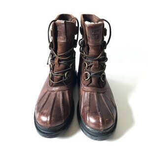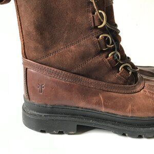 Frye Riley D Ring Waterproof Shearling Duck Boots Mens 11 Brown Rubber Lace Up