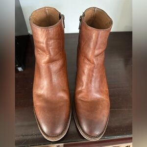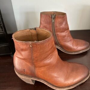 Frye Rosalia Cognac Brown Real Leather Boho Comfy ZipUp Heeled Ankle Bootie