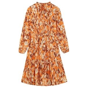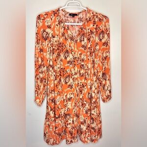 Frye Ruffle Neck Button Front Orange Floral Long Sleeve Mini Dress Size M