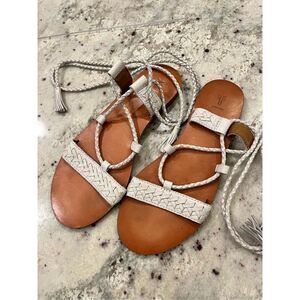 Frye Ruth White Leather Lace Up Gladiator Braided Whipstitch Tassel Sandals sz 7
