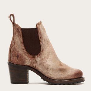 Frye Sabrina Chelsea Vintage Tan/Brown Suede Classic Casual Heeled Ankle Booties