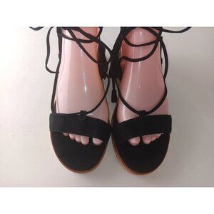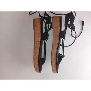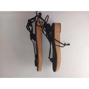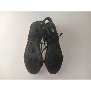 Frye Sandals Women 8M Miranda Shoes Black Leather Gladiator Ankle Strap Wedge