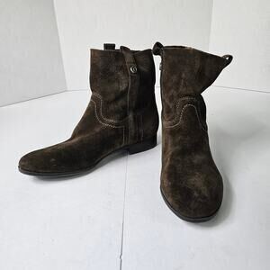 Frye Sarah Shortie Suede Booties Chocolate Brown Womens Sz 7.5M
