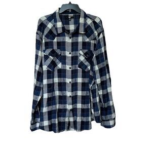 Frye Shirt Mens 3X Button Up Long Sleeve Blue Plaid Cabincore Preppy