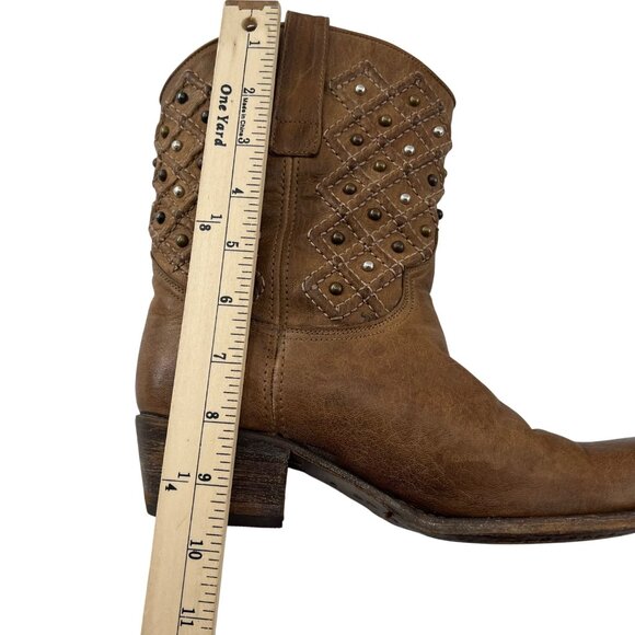 Frye Short Boots Women's 8 Brown Deborah Studded Pintuck Western Cowboy 77891