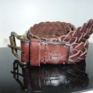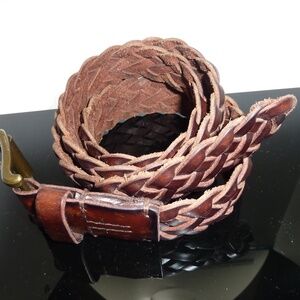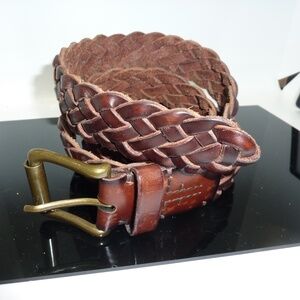 Frye Size 38 Braided Woven Brown Leather Belt Boho Country Cowboy Mens