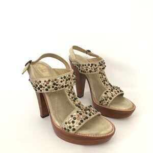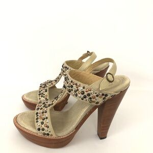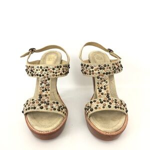 Frye Womens Size 7.5 Joy Studded Bone Leather Open Toe T-Strap Platform Sandals