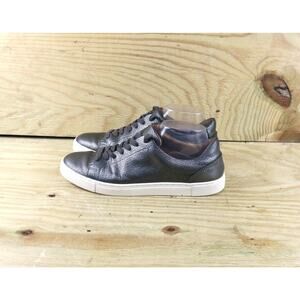 Frye Sneakers Womens 10M Leather Gray Pewter Crackled Metallic Low Top Athletic
