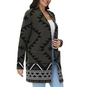 Features: Open front, side pockets, southwest pattern, warm and soft knit