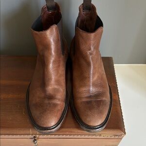Elegant tan leather boots with a sleek design. Comfortable and durable for everyday wear.