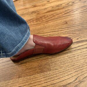 Frye Leather Mules. Red Clay color. Super comfortable. Brand new, never worn (bottom of shoe has some distress marks which is how shoe came new). Size 9.5. Smoke-free home.