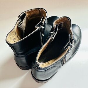 Step out in style with these sleek black leather ankle boots. Perfect for any occasion, these boots offer both comfort and elegance.