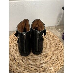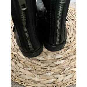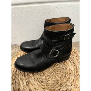 Frye Veronica Black Short Round Toe Leather moto Zip Buckle Women's Boot, Size 7