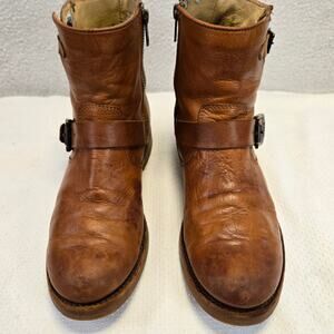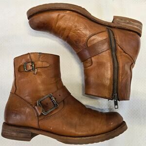 Frye Veronica Boots Womens 8.5 6" Shortie Harness Boots Tan Whiskey Leather Moto