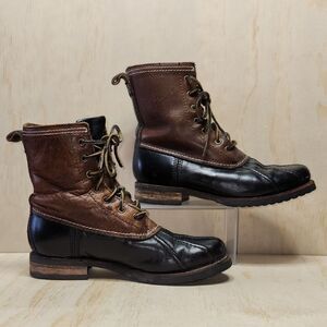 Frye Veronica Brown Black Duck Boots Leather Shearling Mid Calf Women 7.5