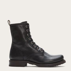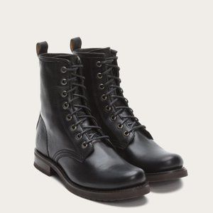 Frye Veronica Combat Black Leather Lace Up Casual Moto Everyday Cute Ankle Boots