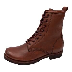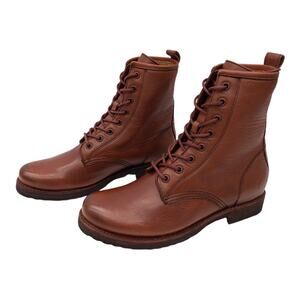 Frye Red Clay Brown Veronica Leather Lace Up Heeled Combat Boots 7.5