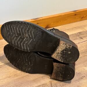A rich wine color. Lace up closure. Pull tab on the back. Round toe design. Stacked heel.