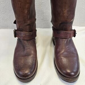 Frye Veronica Riding Boot Womens 7.5B Brown Leather Tall Zip Buckle Made in Mexico. Western, Classic, Equestrian, Vintage, Rugged, Fall, Distressed, Heritage, Casual, Durable, Stylish.