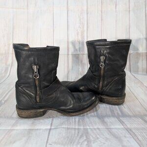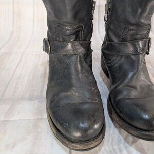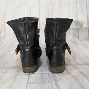 Frye Veronica Short Black Leather Biker Boots with Buckle Straps Size 8