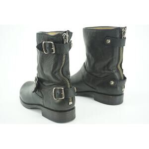 Frye Veronica Shortie Black Leather Biker Boots size 7.5 Slouchy Buckle