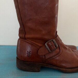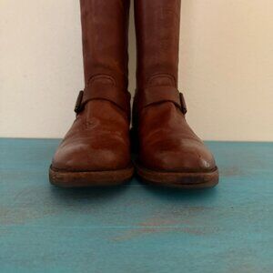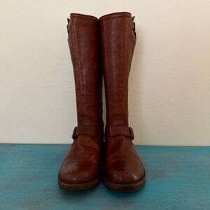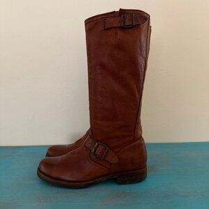 Frye Veronica Slouch Brown Tan Leather Engineer Moto Tall Buckle Boot Size 8.5