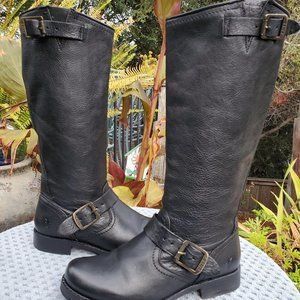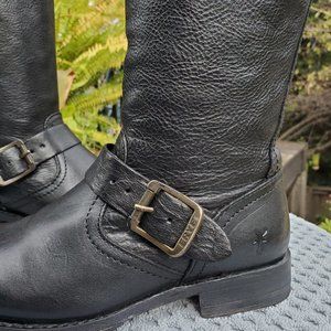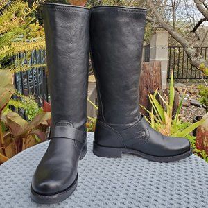 Riding-style pull-on has a genuine leather upper with antiqued buckle detailing.
