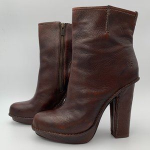 Frye Victoria Platform Ankle Boots Distressed Vintage Leather Brown Sz9.5