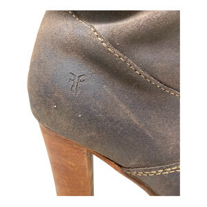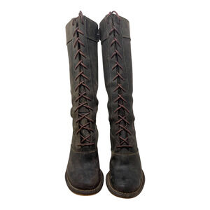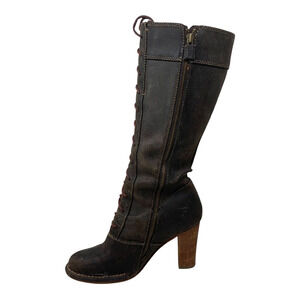 Frye Villager Lace Up Heeled Boots Women's Sz 6.5 Knee High Oiled Brown Leather