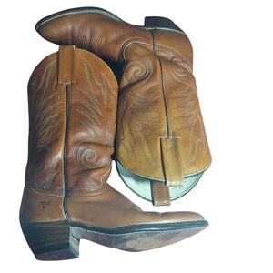 Frye Vintage 1980s Tan Brown Embroidered Pointed Toe Western Boots
