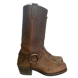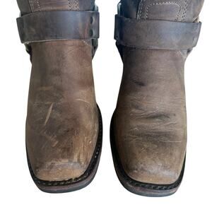 Frye Vintage Brown Leather Square Toe Harness Boots Size 6.5