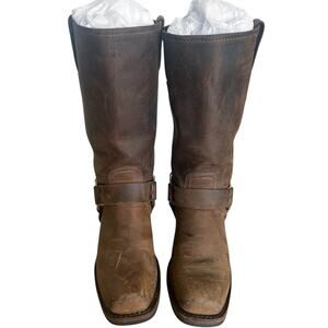 Frye Vintage Brown Leather Square Toe Harness Boots