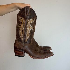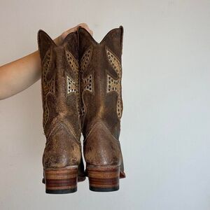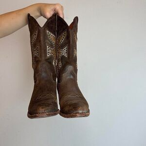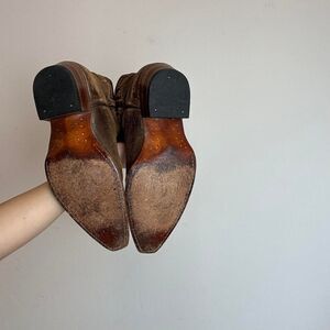 Frye Vintage Cowboy Western Brown Leather Boots with studs details made in Spain