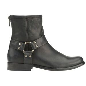 Signature side-harness rings style a leather boot, distressed by hand for a vintaged finish. Bench-crafted by hand, Frye's 150-year-old heritage of quality leatherwork is evident in every style. Round toe. Leather construction. Back zip closure. Natural hide variations and markings contribute to the custom look of each boot. No two are alike.
