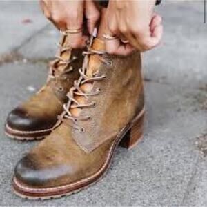 ankle bootie boot combat boot boho cottage going out casual everyday fall boot tan beige cream light brown rustic western gypsy hippie