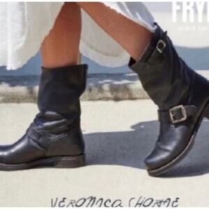 Frye Vintage Veronica Short Slouch Taupe Brown Leather Mid Calf Boots