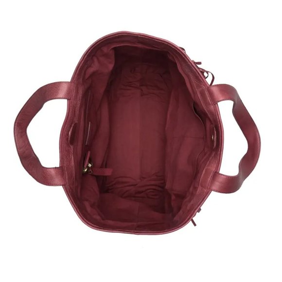 Frye Vivian Leather Fringe Tote Bag in Open Red Boho Shoulder Strap Handbag