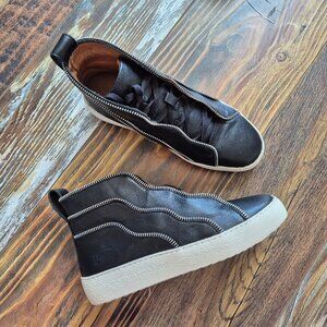 Frye Webster Black Leather Zip-Detail High Top Sneakers Platform Lace Up