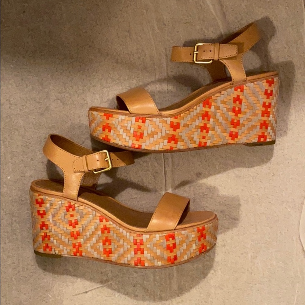 Frye tan/multicolor wedges