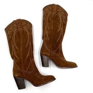 Frye Western Boots Brown Suede Tall Knee High Block Heel Cowgirl Sz 6.5
