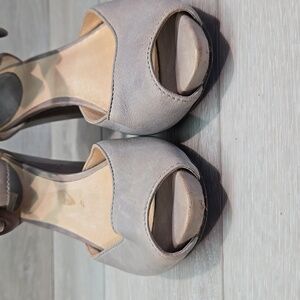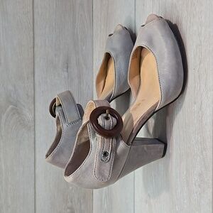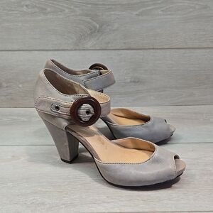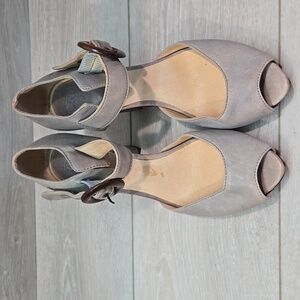 Step out in style with these elegant gray peep-toe heels. Perfect for any occasion, these shoes offer both comfort and sophistication.