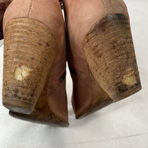 Frye Womens Sz 7.5 Reina Boots 3472056-DSR Tan Leather Side Zip Heeled READ