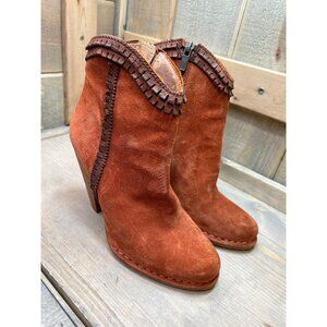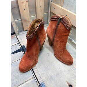 Frye Womens 7M Burnt Orange Suede Western Heeled Fall Ankle Boots
