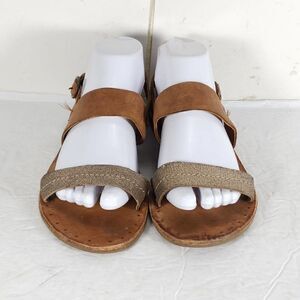 Frye Women's Ally 2 Band US8,5M Distressed Leather Brown Bronze Slingback Sandals .